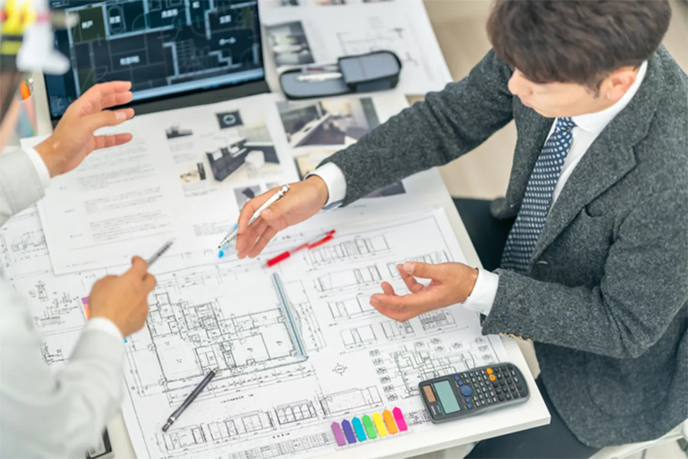 お客様の理想をカタチにするため、打ち合わせの段階からじっくりと耳を傾けます。工事中はもちろん、完成後のアフターフォローまで責任を持ってサポート。住まいに関する疑問や困りごとにも迅速に対応し、「任せてよかった」と思っていただける体制を整えています。